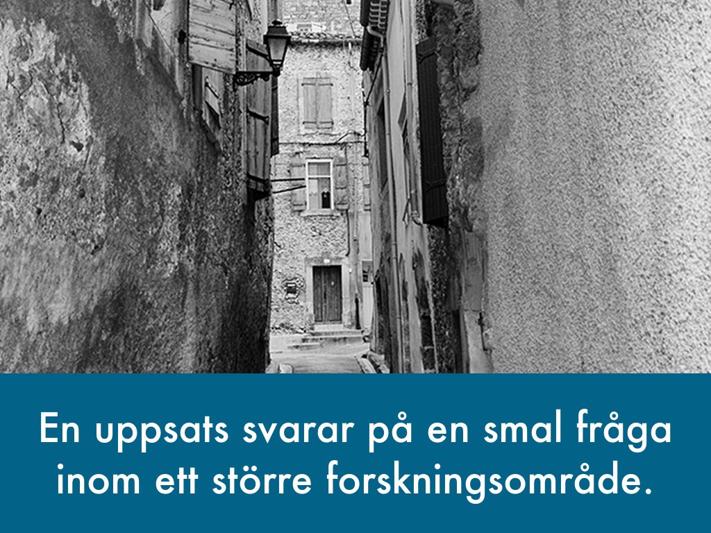 En uppsats svarar på en smal fråga inom ett större forskningsområde.