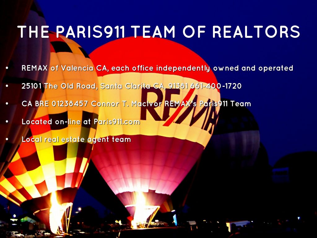 CA BRE 01238457 Connor T. MacIvor REMAX's Paris911 Team