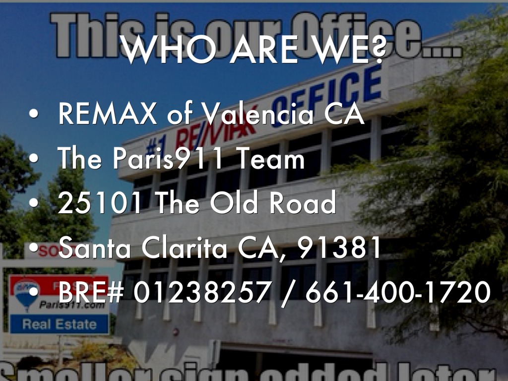 BY RE/MAX OF VALENCIA'S PARIS911 TEAM!