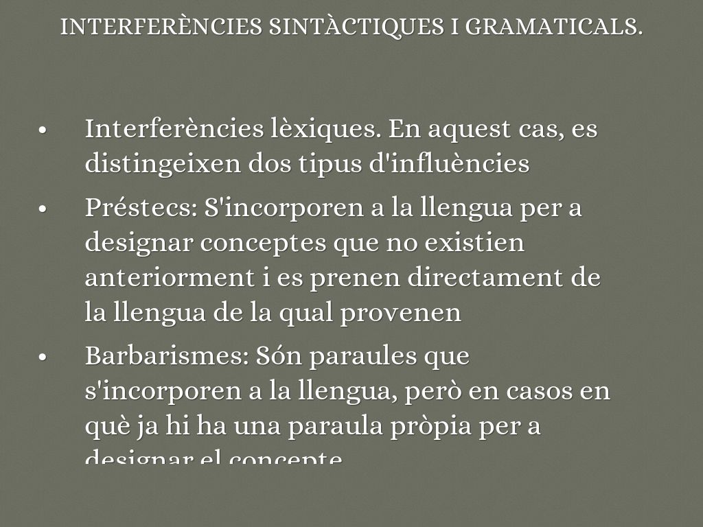 INTERFERÈNCIES SINTÀCTIQUES I GRAMATICALS.