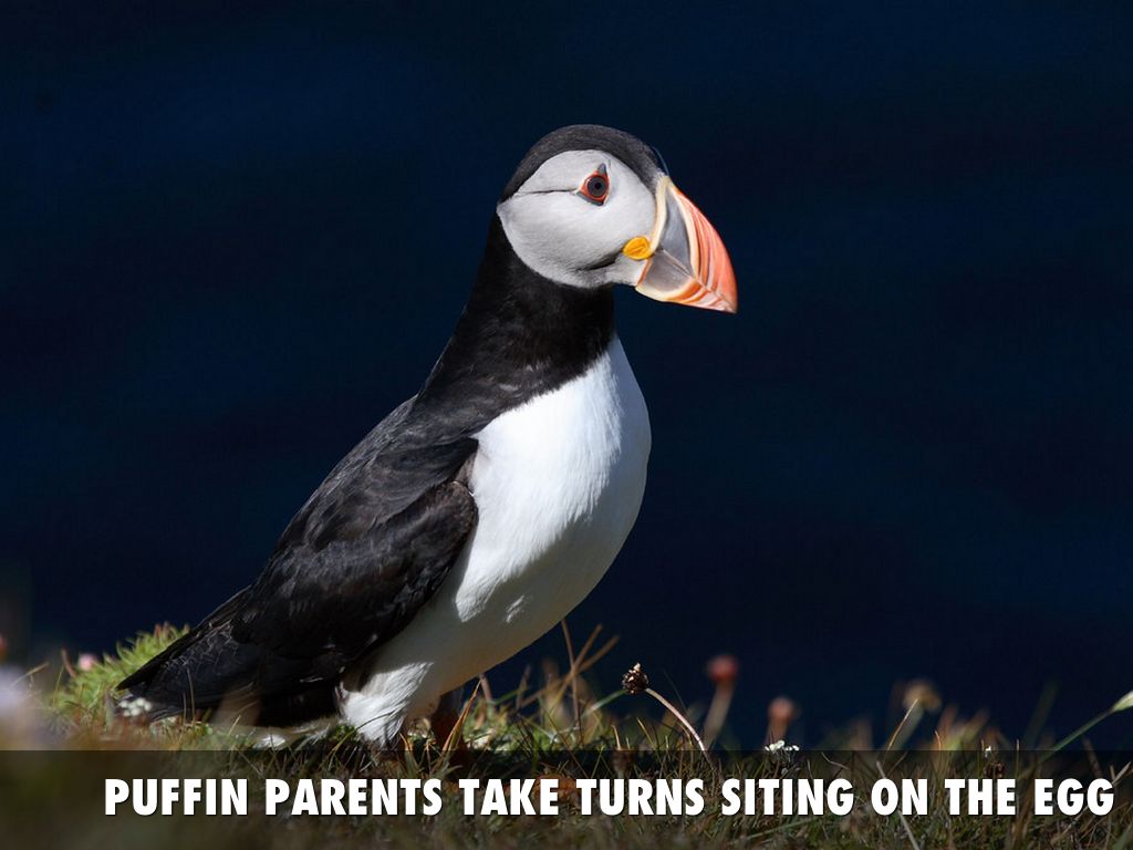 PUFFIN PARENTS TAKE TURNS SITING ON THE EGG