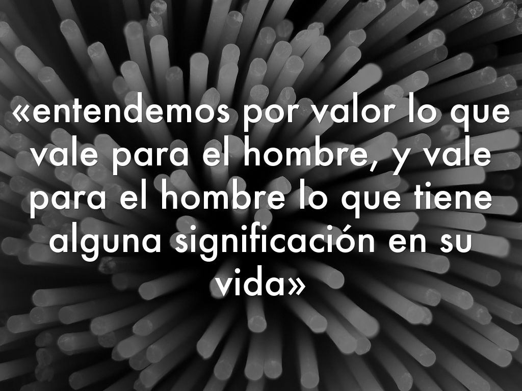 «entendemos por valor lo que vale para el hombre, y vale para el hombre lo que tiene alguna significación en su vida»