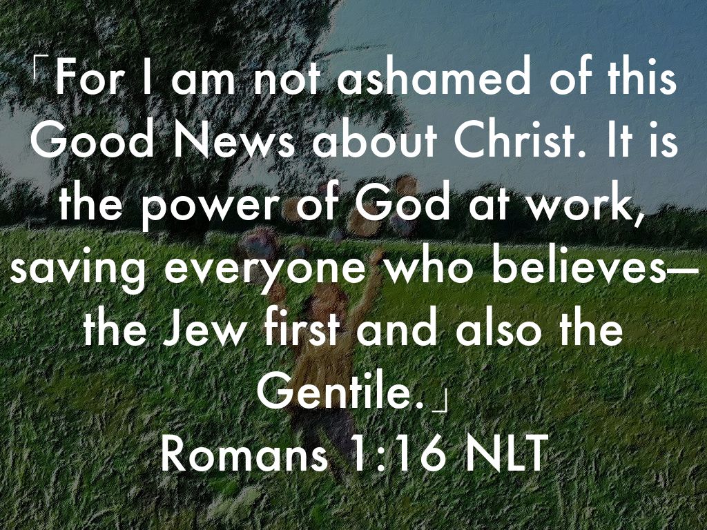 「For I am not ashamed of this Good News about Christ. It is the power of God at work, saving everyone who believes—the Jew first and also the Gentile.」 Romans 1:16 NLT