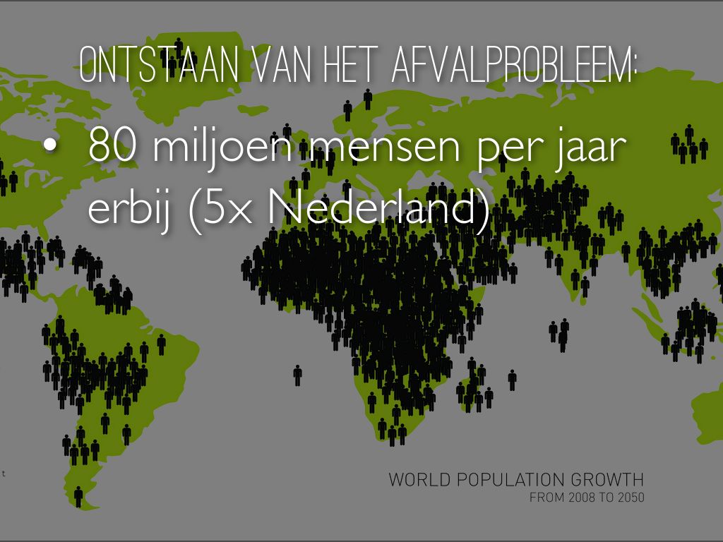 - Explosieve toename hoeveelheid afval: 12 miljard ton per jaar (100 jaar geleden; 10x zo weinig)