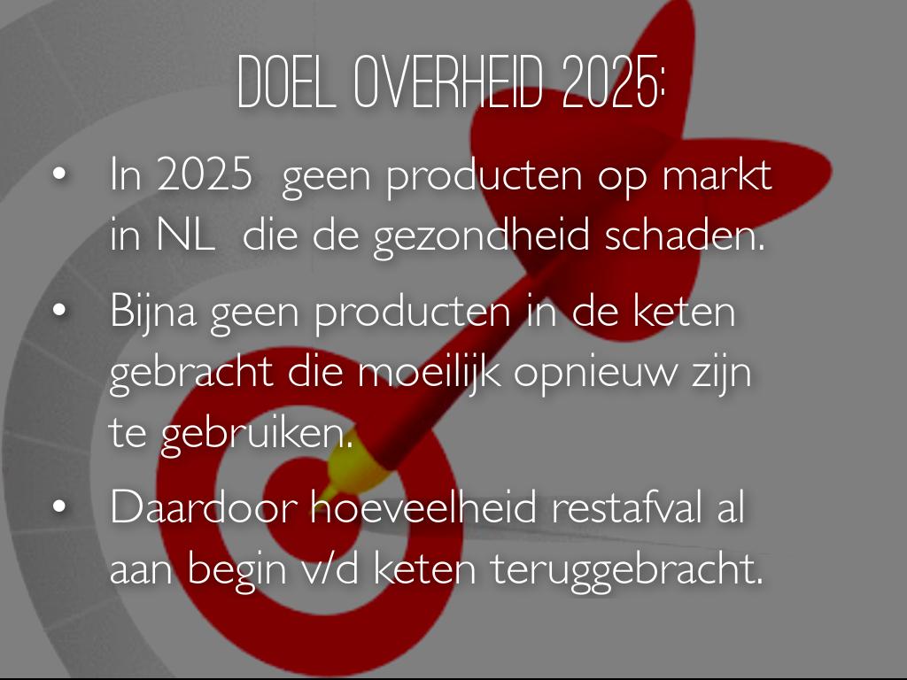- In 2025 geen producten op markt in NL die de gezondheid schaden.