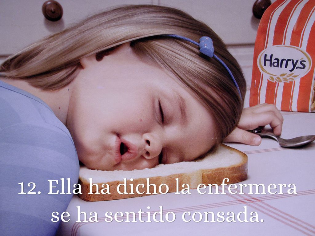 12. Ella ha dicho la enfermera se ha sentido consada.