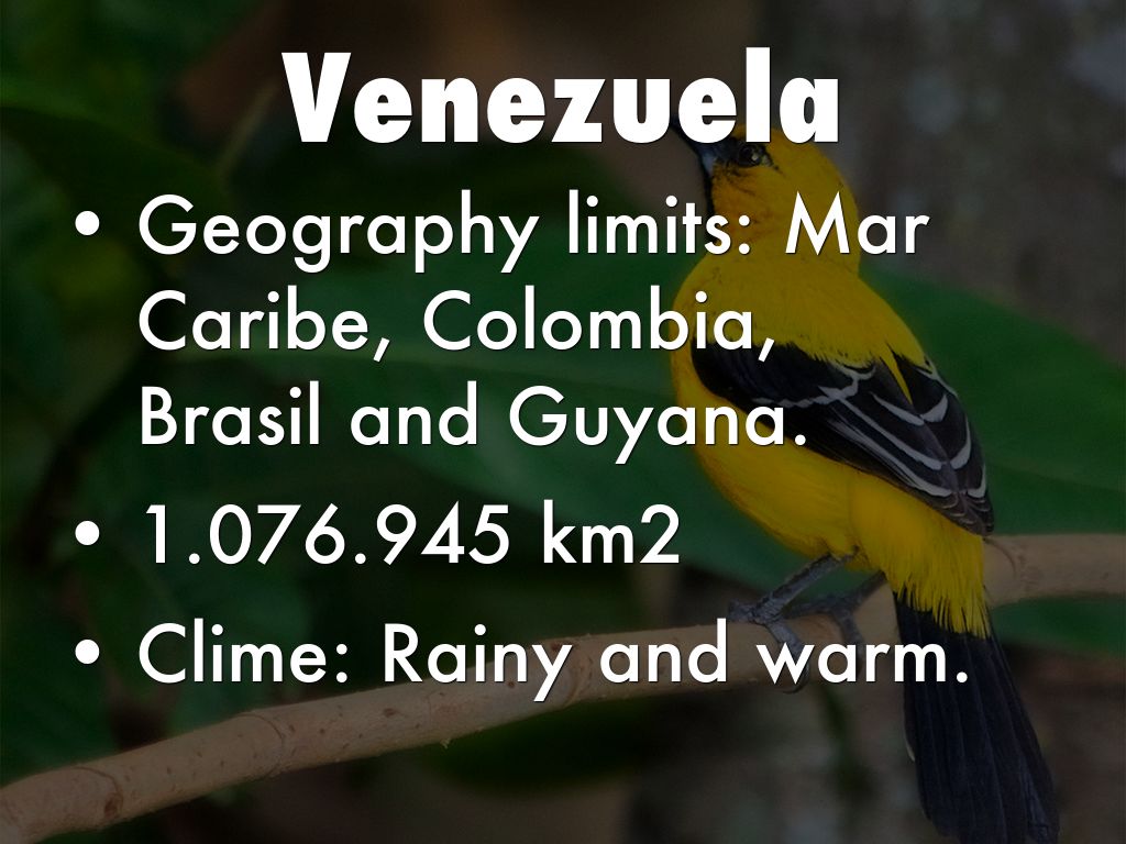 - Geography limits: Mar Caribe, Colombia, Brasil and Guyana.