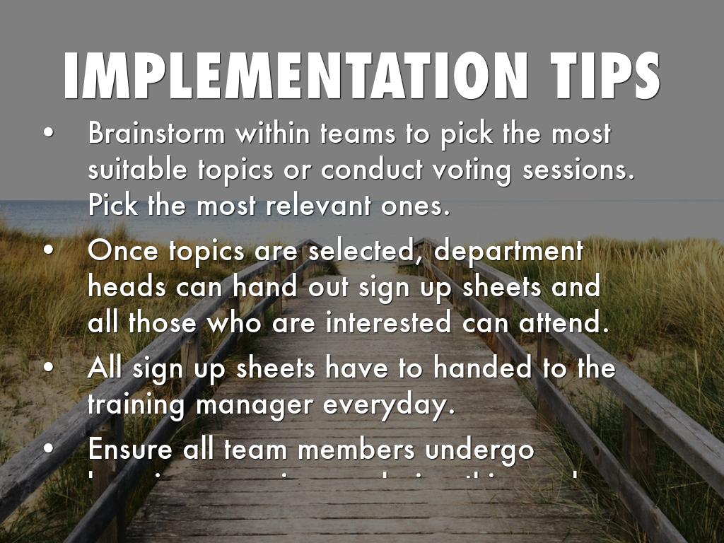 Once topics are selected, department heads can hand out sign up sheets and all those who are interested can attend.