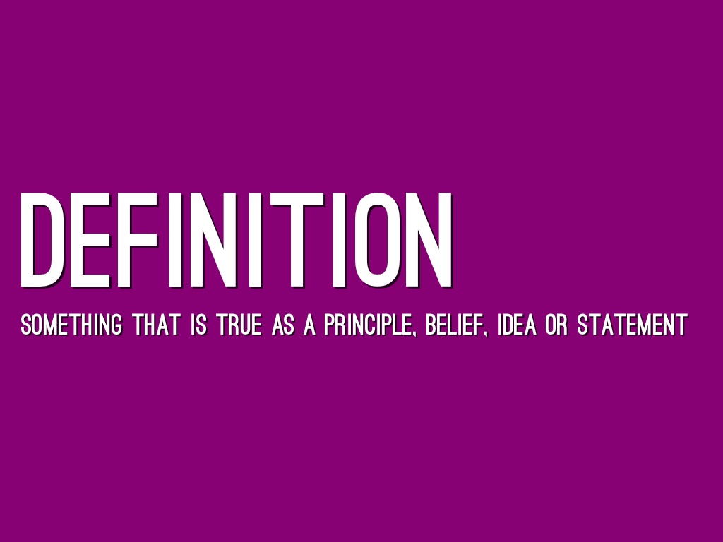 SOMETHING THAT IS TRUE AS A PRINCIPLE, BELIEF, IDEA OR STATEMENT