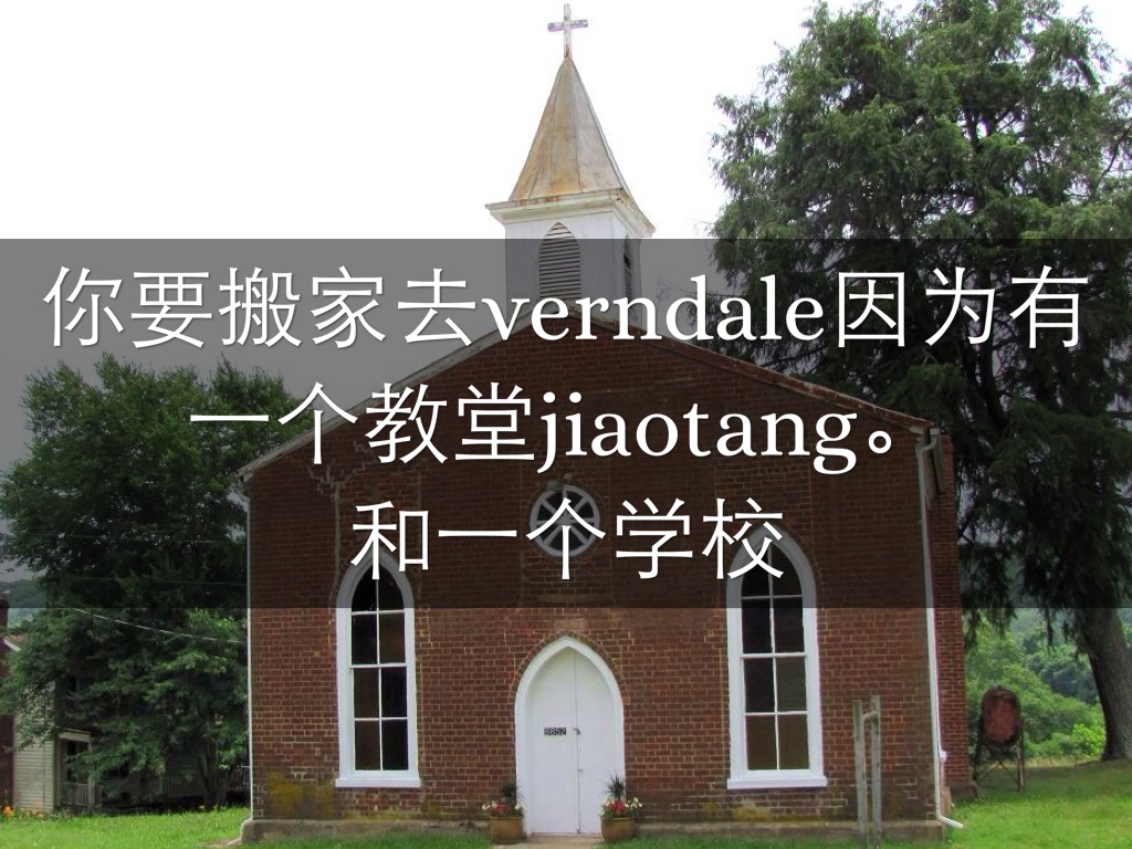 你要搬家去verndale因为有一个教堂jiaotang。 和一个学校