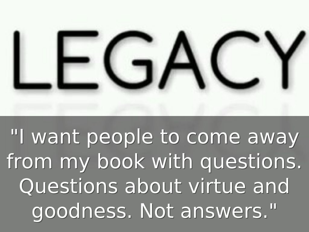 "I want people to come away from my book with questions. Questions about virtue and goodness. Not answers."