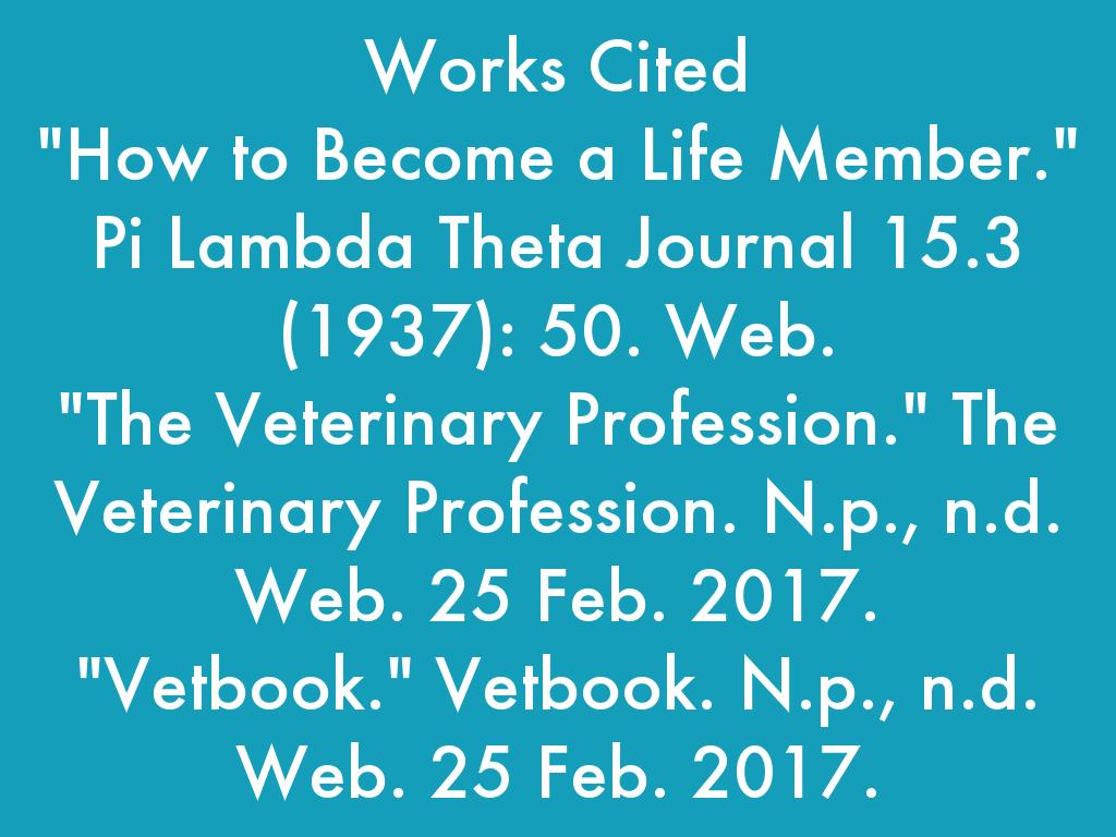 "The Veterinary Profession." The Veterinary Profession. N.p., n.d. Web. 25 Feb. 2017.