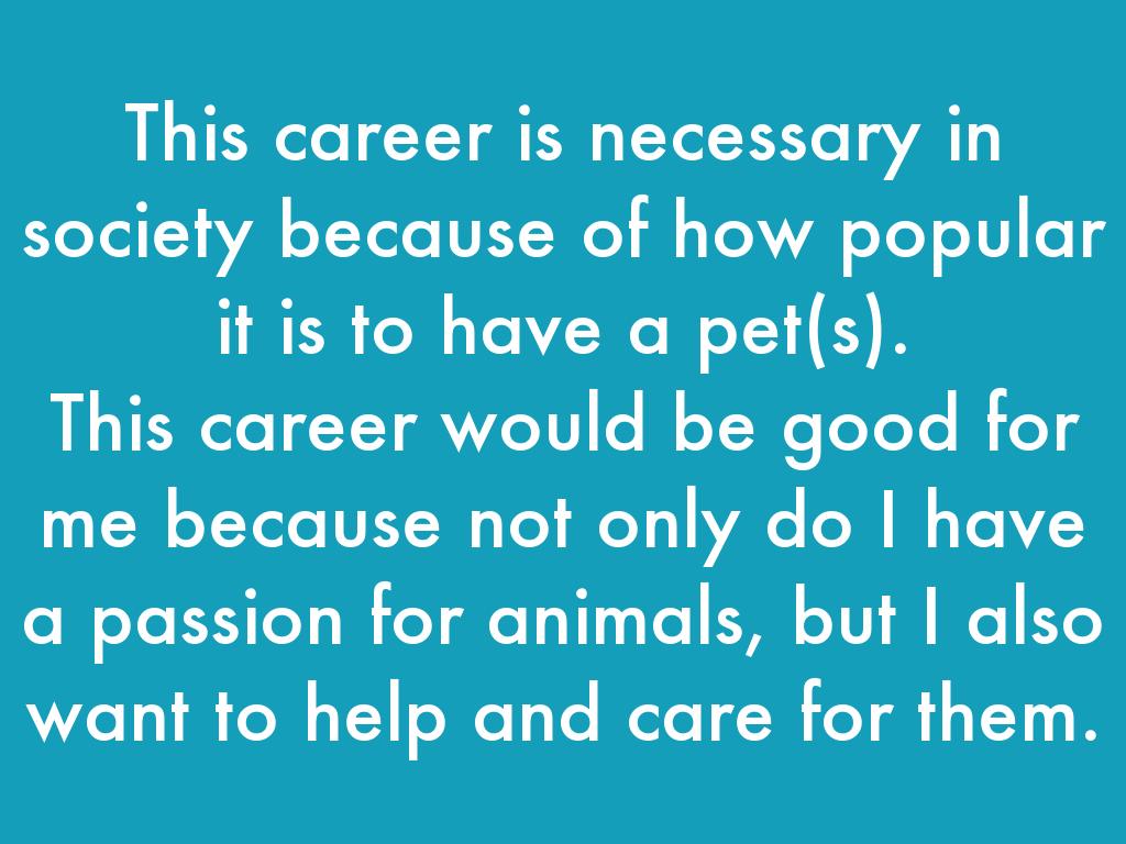 This career would be good for me because not only do I have a passion for animals, but I also want to help and care for them.