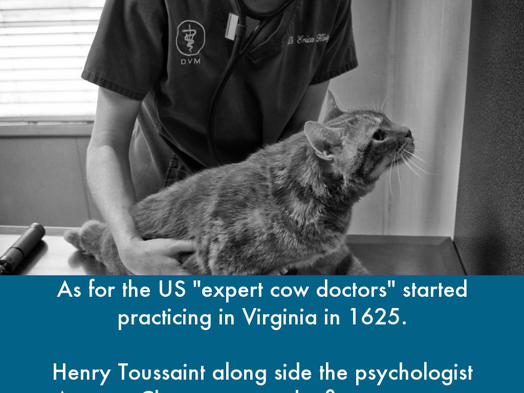 As for the US "expert cow doctors" started practicing in Virginia in 1625.