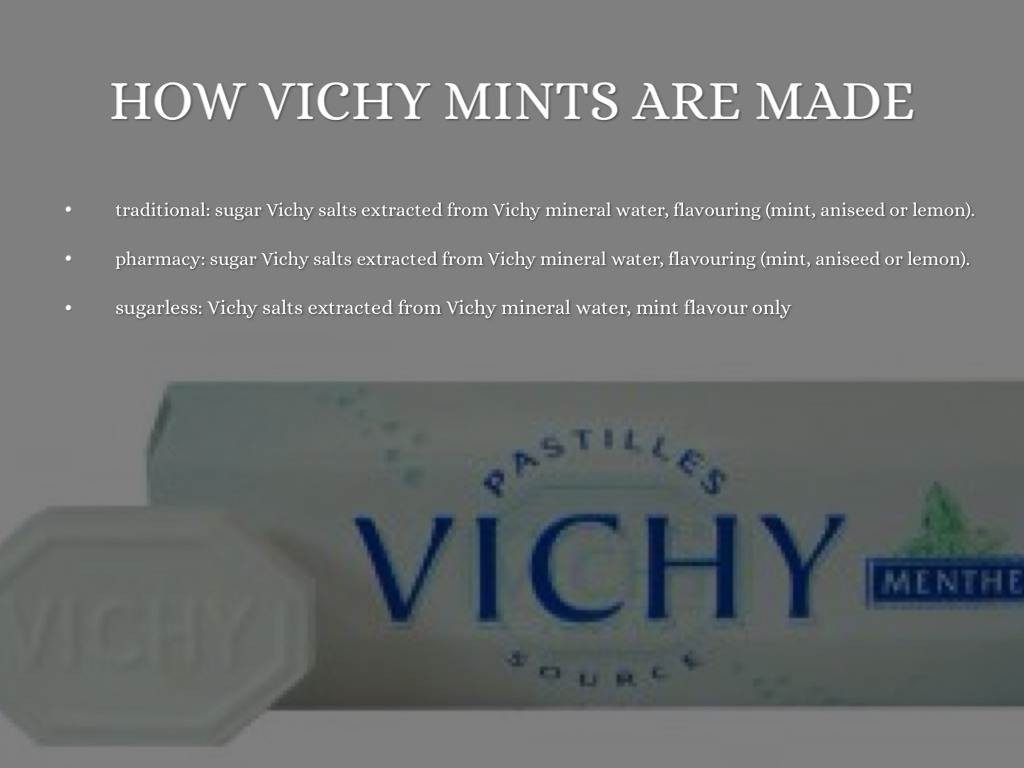 • In 1990 the first sugarless mints were called VICHY FORME.