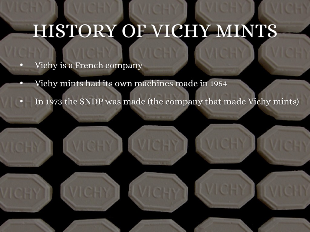 • In 1973 the SNDP was made (the company that made Vichy mints)