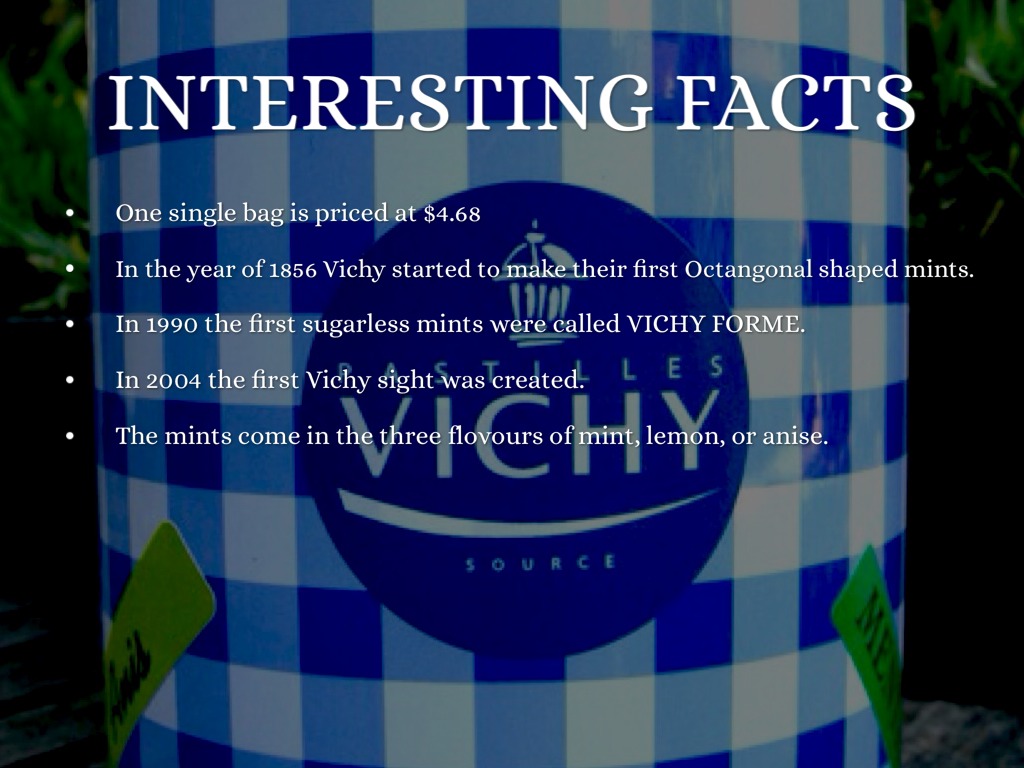 • In the year of 1856 Vichy started to make their first Octangonal shaped mints.