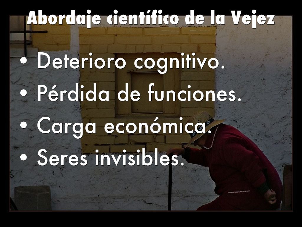Viejismo . Fue descrito por Butler (1969): actitudes y acciones discriminatorias de rechazo, temor, desagrado, negación, y agresión a las personas envejecidas y a la vejez.