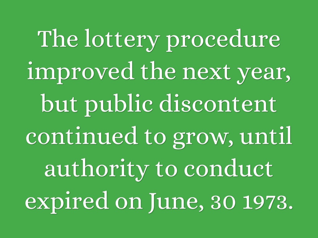 The lottery procedure improved the next year, but public discontent continued to grow, until authority to conduct expired on June, 30 1973.