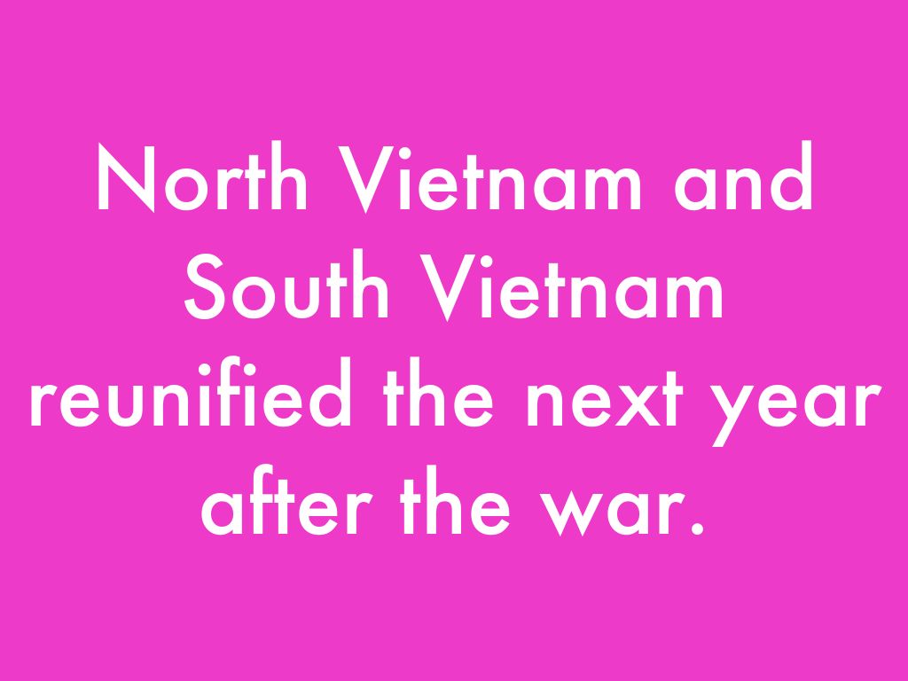 The Vietnam war began when the North Vietnamese government and the Viet Cong fought to reunify Vietnam
