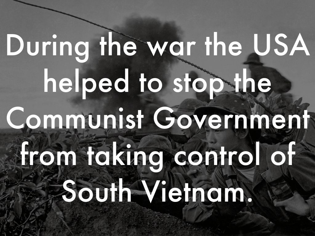 During the war the USA helped to stop the Communist Government from taking control of South Vietnam.