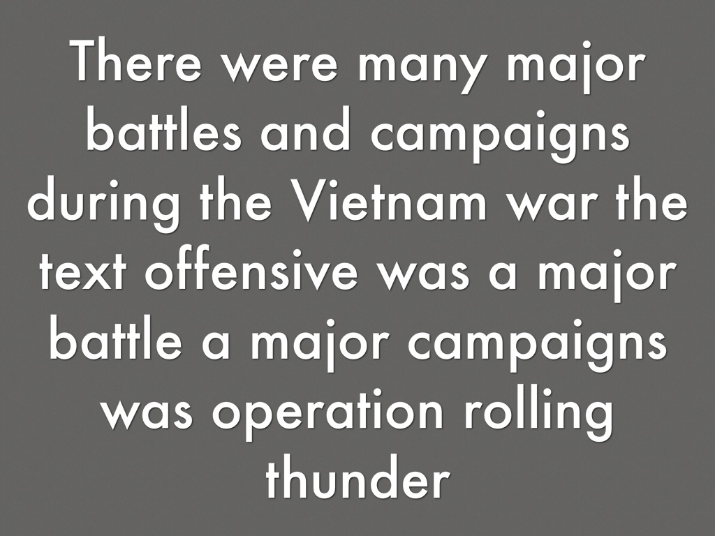 There were many major battles and campaigns during the Vietnam war the text offensive was a major battle a major campaigns was operation rolling thunder