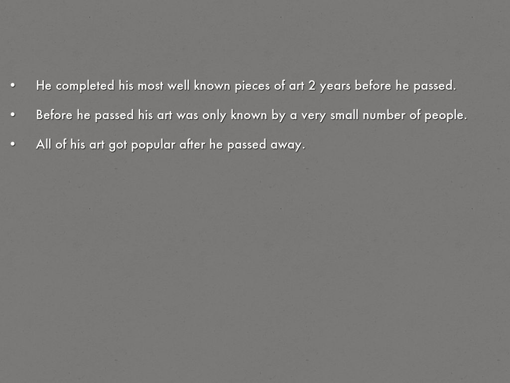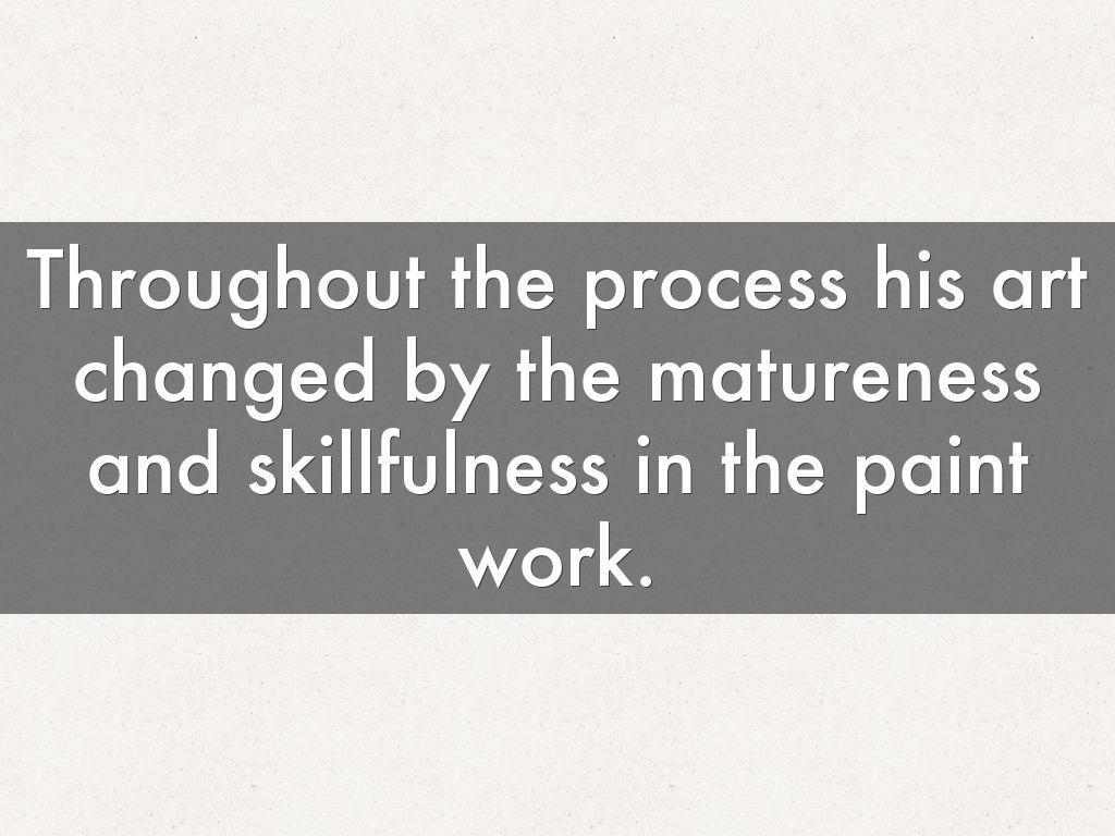 Throughout the process his art changed by the matureness and skillfulness in the paint work.