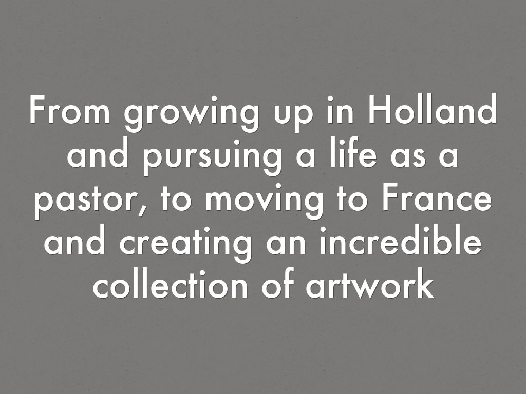 From growing up in Holland and pursuing a life as a pastor, to moving to France and creating an incredible collection of artwork