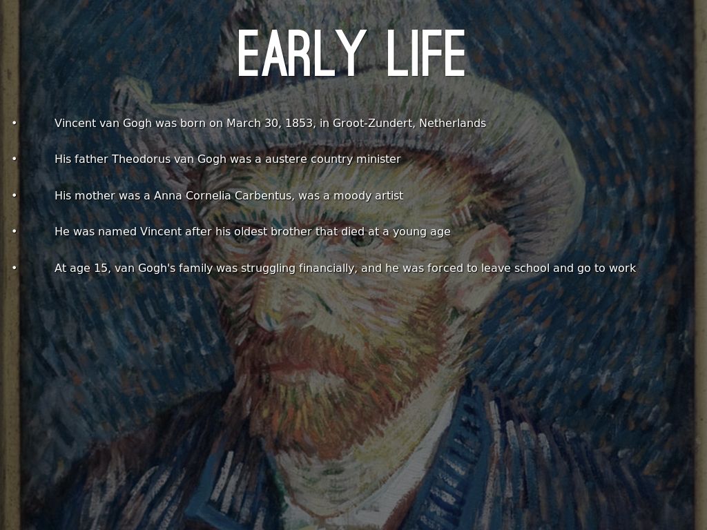 At age 15, van Gogh's family was struggling financially, and he was forced to leave school and go to work