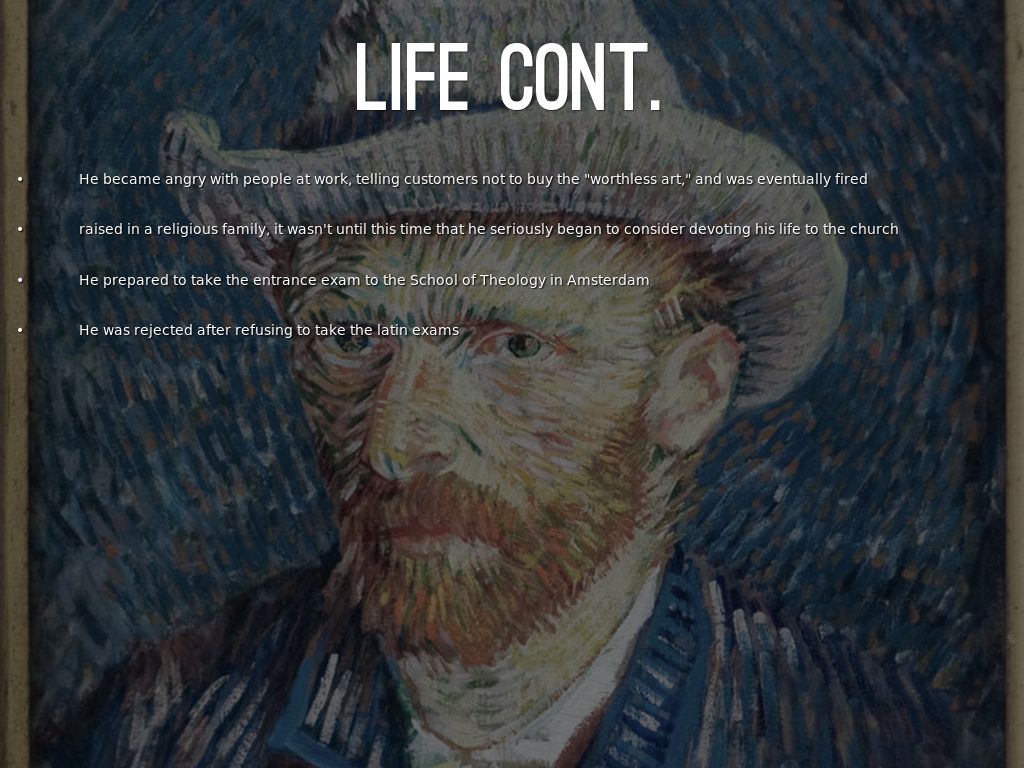He became angry with people at work, telling customers not to buy the "worthless art," and was eventually fired