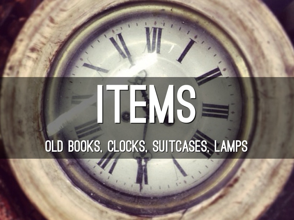 OLD BOOKS, CLOCKS, SUITCASES, LAMPS