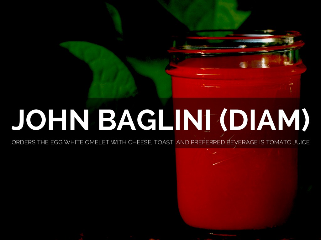 ORDERS THE EGG WHITE OMELET WITH CHEESE, TOAST, AND PREFERRED BEVERAGE IS TOMATO JUICE