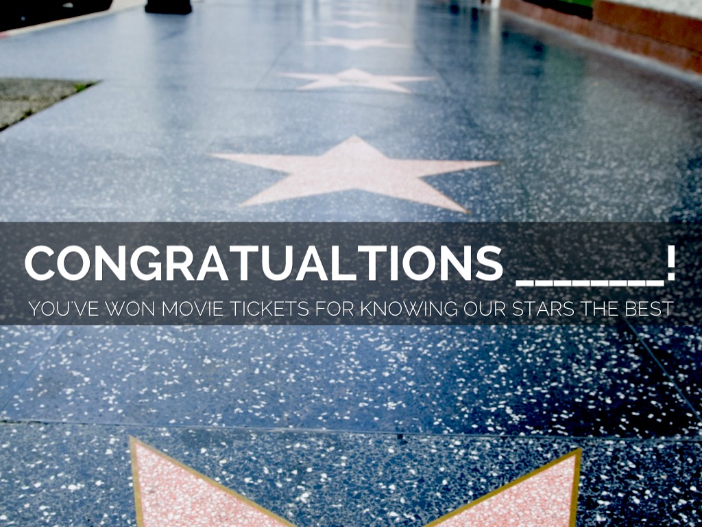 YOU'VE WON MOVIE TICKETS FOR KNOWING OUR STARS THE BEST