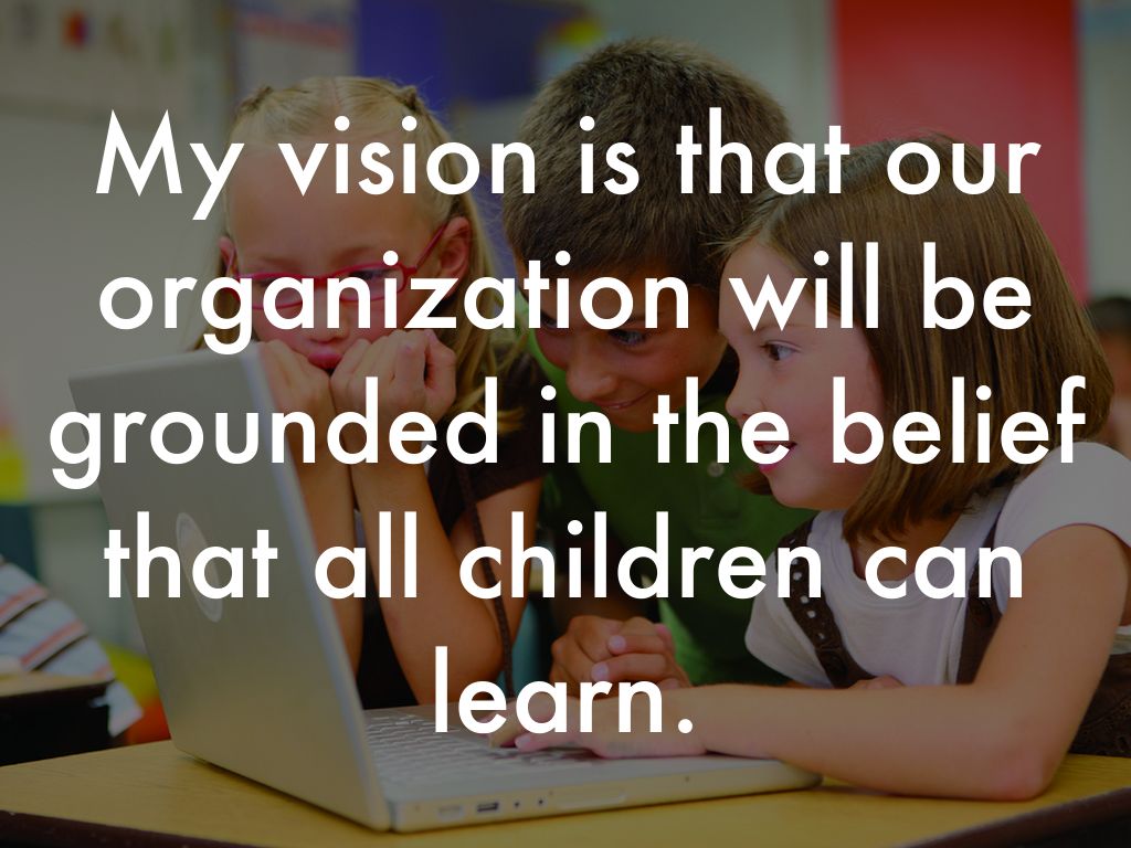 My vision is that our organization will be grounded in the belief that all children can learn.