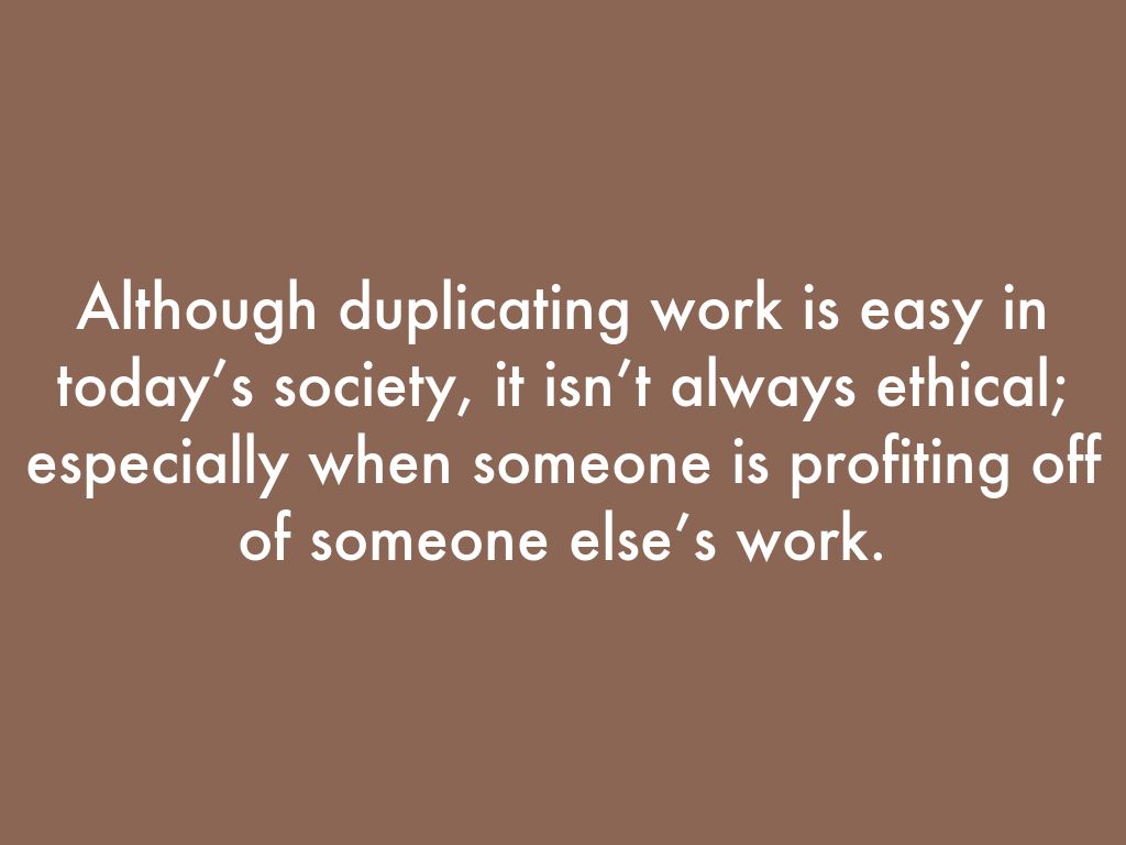 Although duplicating work is easy in today’s society, it isn’t always ethical; especially when someone is profiting off of someone else’s work.