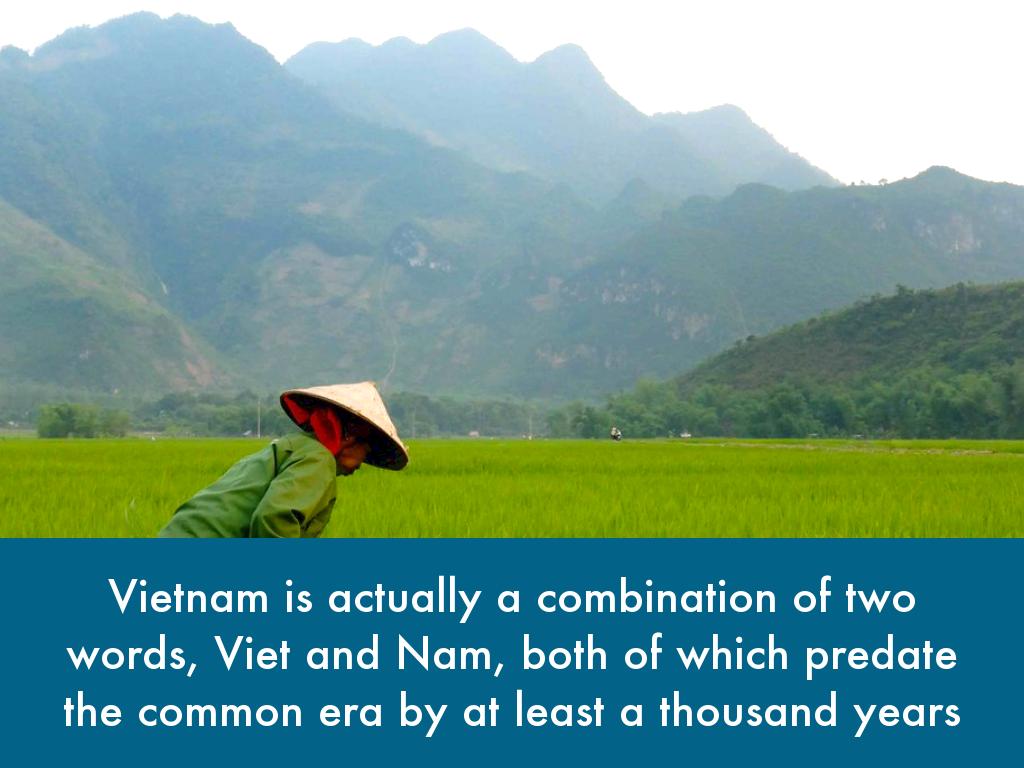 Vietnam is actually a combination of two words, Viet and Nam, both of which predate the common era by at least a thousand years