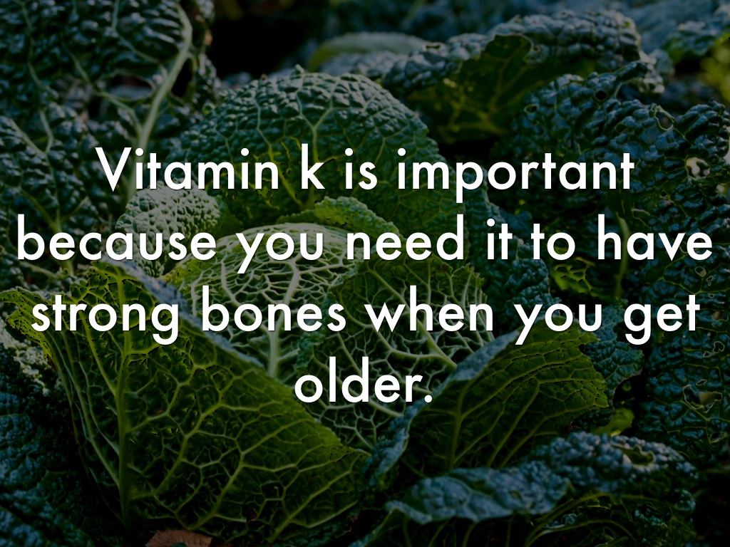 Vitamin k is important because you need it to have strong bones when you get older.