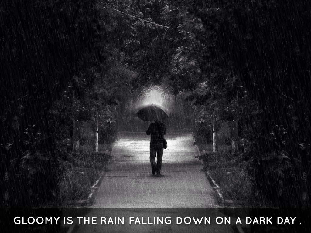 GLOOMY IS THE RAIN FALLING DOWN ON A DARK DAY .