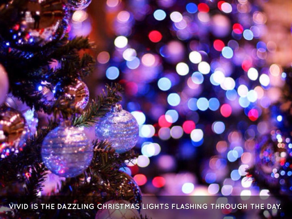 VIVID IS THE DAZZLING CHRISTMAS LIGHTS FLASHING THROUGH THE DAY.