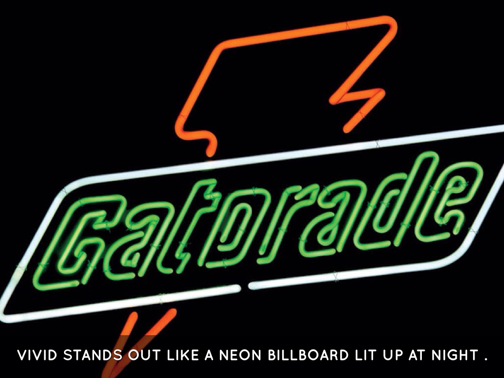 VIVID STANDS OUT LIKE A NEON BILLBOARD LIT UP AT NIGHT .