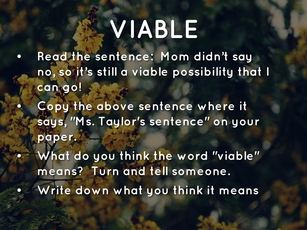 What do you think the word "viable" means? Turn and tell someone.