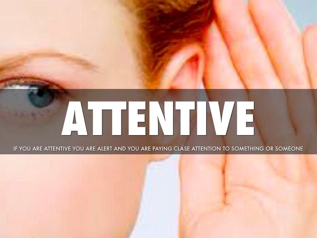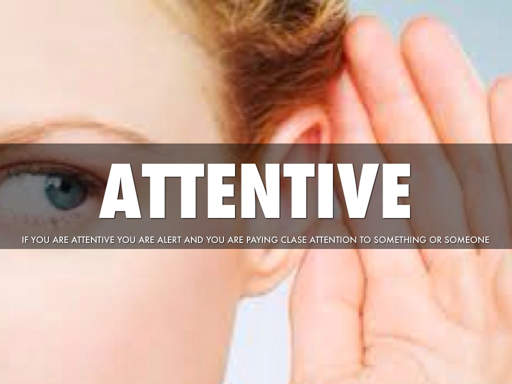 IF YOU ARE ATTENTIVE YOU ARE ALERT AND YOU ARE PAYING CLASE ATTENTION TO SOMETHING OR SOMEONE