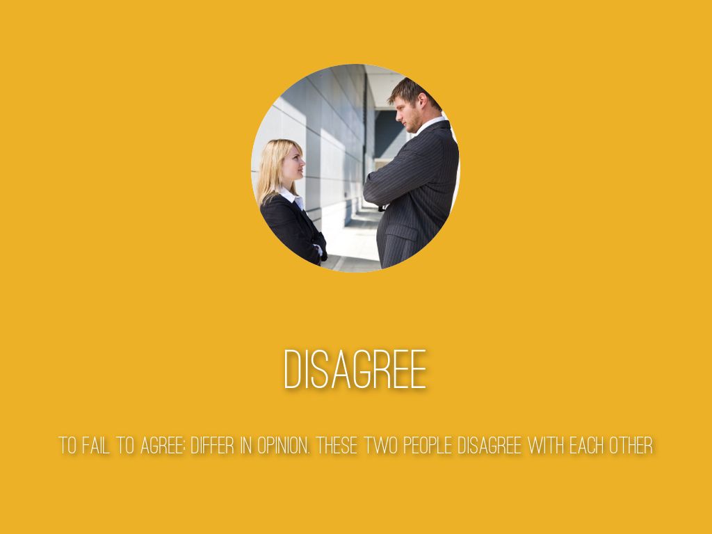 TO FAIL TO AGREE; DIFFER IN OPINION. THESE TWO PEOPLE Disagree WITH EACH OTHER