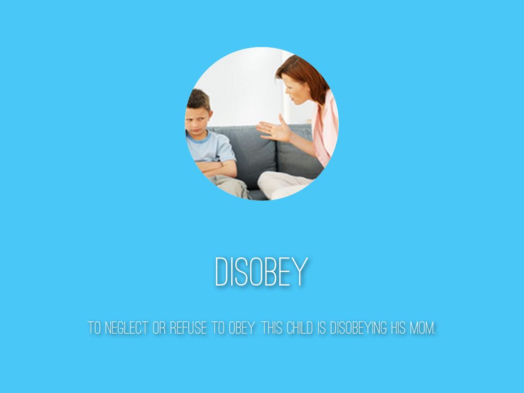 TO NEGLECT OR REFUSE TO OBEY. THIS CHILD IS DISOBEYING HIS MOM.