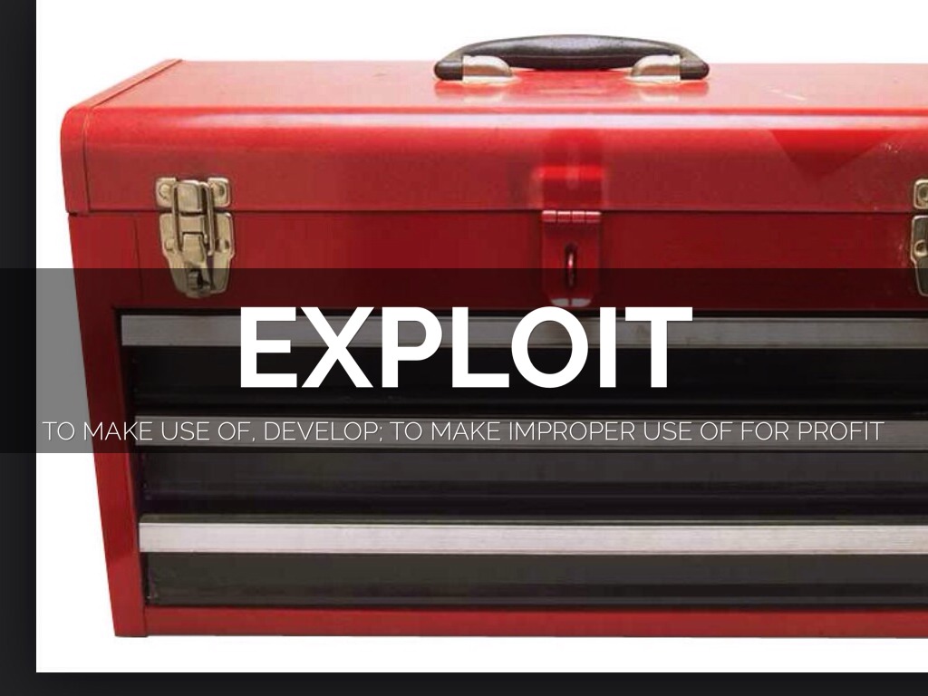 TO MAKE USE OF, DEVELOP; TO MAKE IMPROPER USE OF FOR PROFIT