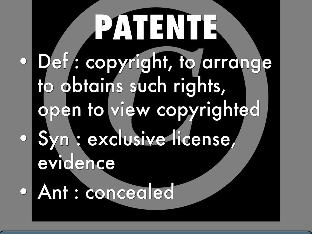 Def : copyright, to arrange to obtains such rights, open to view copyrighted