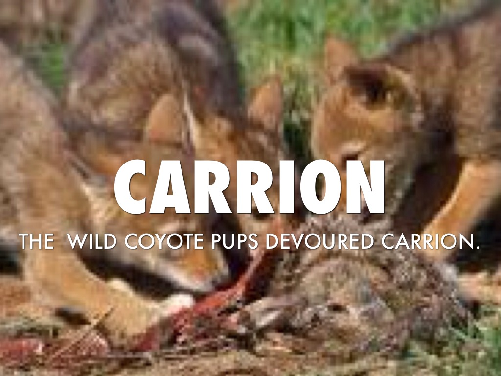 THE WILD COYOTE PUPS DEVOURED CARRION.