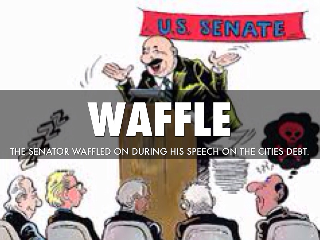 THE SENATOR WAFFLED ON DURING HIS SPEECH ON THE CITIES DEBT.