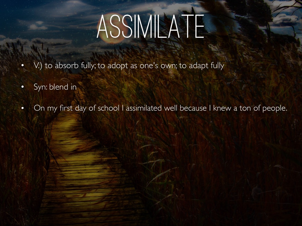 V.) to absorb fully; to adopt as one's own; to adapt fully