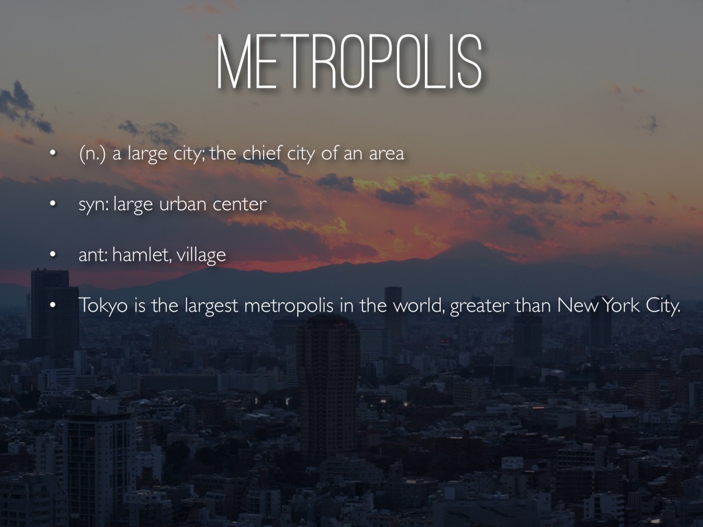 Tokyo is the largest metropolis in the world, greater than New York City.